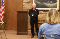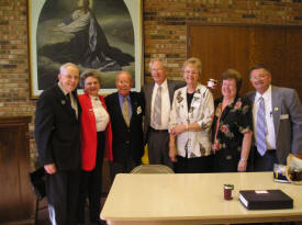 2 May 2006 Members of the Syttende Mai planning committee met with Jim Kurtti from the Finnish American Heritage Center, Jane Nordberg of the Daily Mining Gazette newspaper and visiting author, Solveig Tolvik who was in town signing her new book "Nikolai Fortune". Her book is about 4 generations of women in her family who she thought were Norwegian because they had come to America to the Copper Country from Artic Norway. But it turned out they had been like many who came to work in our Copper Mines from that area; they had come from northern Finland and migrated to Artic Norway/Lapland because there were jobs in the mines or fishing industry there and fish a plenty to eat during a time of repeated crop failures in the Scandinavian countries. But the Artic Norway mines were closing in the 1860s so these people then migrated to the Copper Country here in Michigan to work in the mines. Jim told us about the first Scandinavian churches that were built here. The first, established in 1868, was called Holy Trinity and was located near Calumet in an area now known as Frenchtown and served Norwegian, Swedish and Finnish people. There was a second Scandinavian church located in Calumet also. As finances allowed and disagreements forced, these divided into their own respective congregations. Jim told us of some impressive alter paintings done by the same painter for each of these churches. One of those alter paintings from the Calumet Scandinavian church is now located in the archives of the Finnish American Heritage Center. The other alter painting that went from the Frenchtown Scandinavian church to the Norwegian Lutheran church that was located at the top of White Street in Hancock is now displayed in an office in the Gloria Dei Church in Hancock. The Frenchtown and White Street churches are now just rock foundations among the weeds.