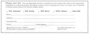The Norwegian Lutheran Church is located at 608 Elm Street, Calumet, Michigan, one block west of the Calumet Theatre, and
